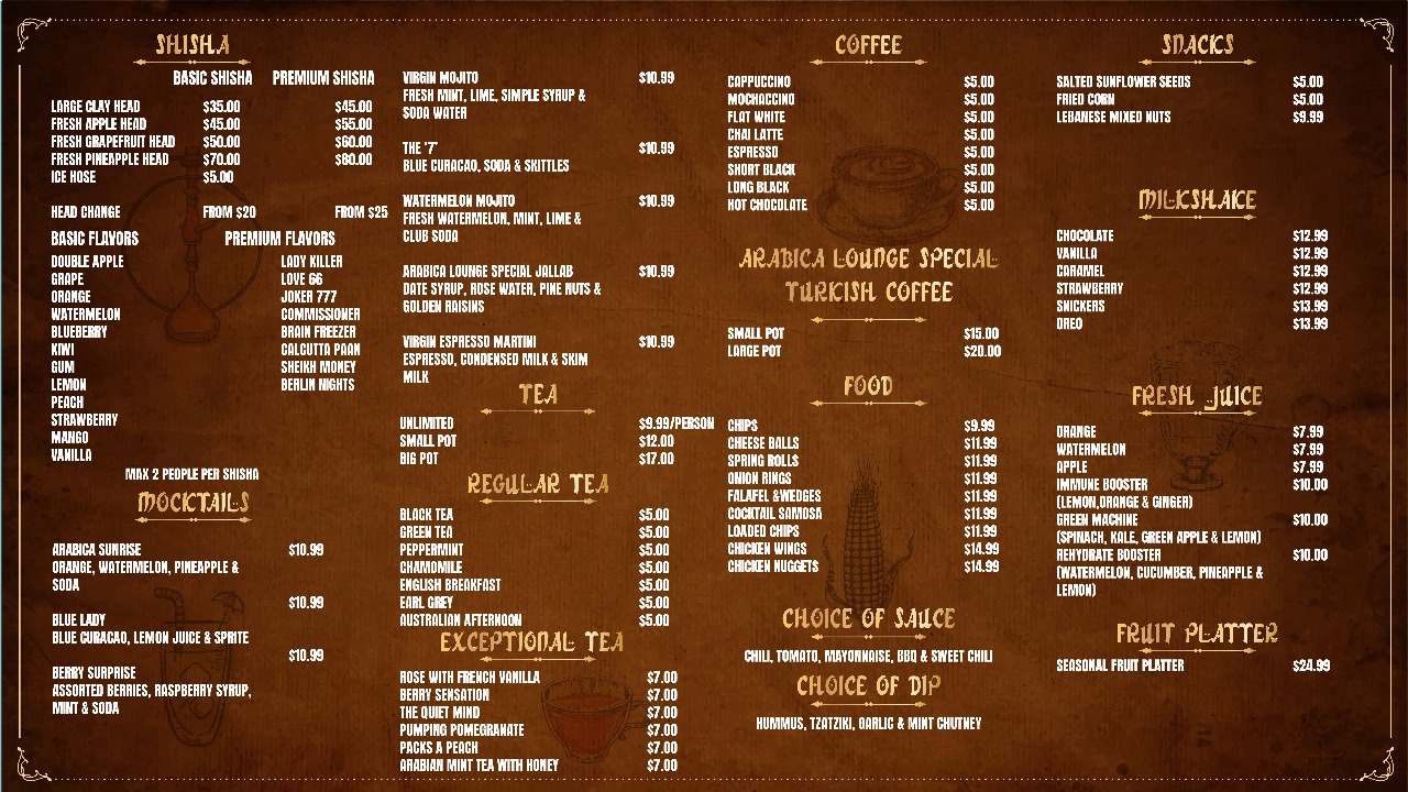 Menu from Arabica Lounge