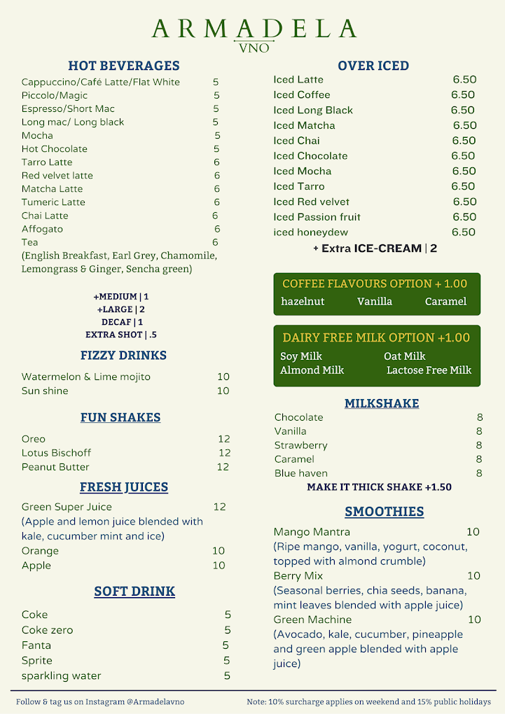 Menu from Armadela Vno