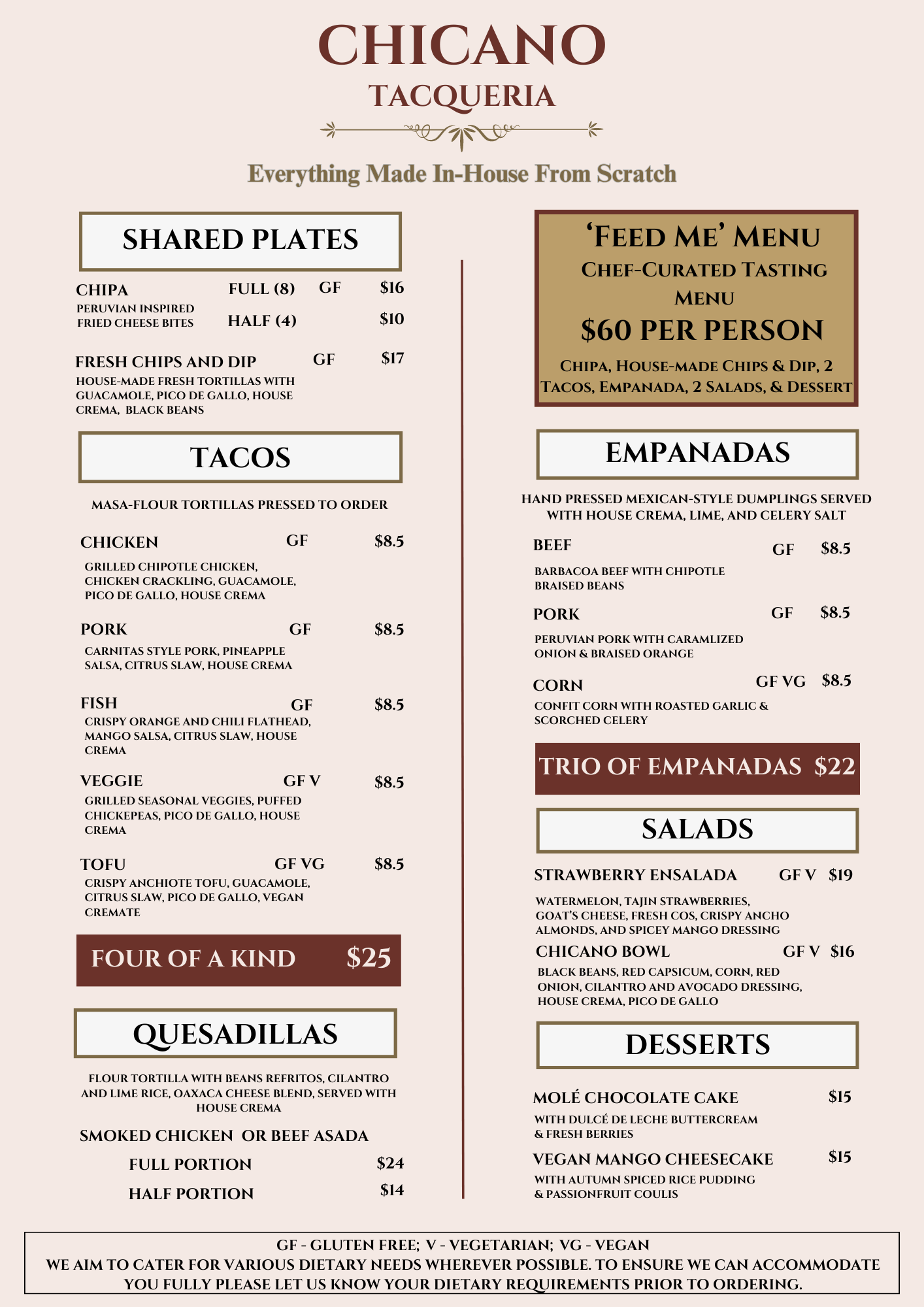 Menu from Chicano Taqueria