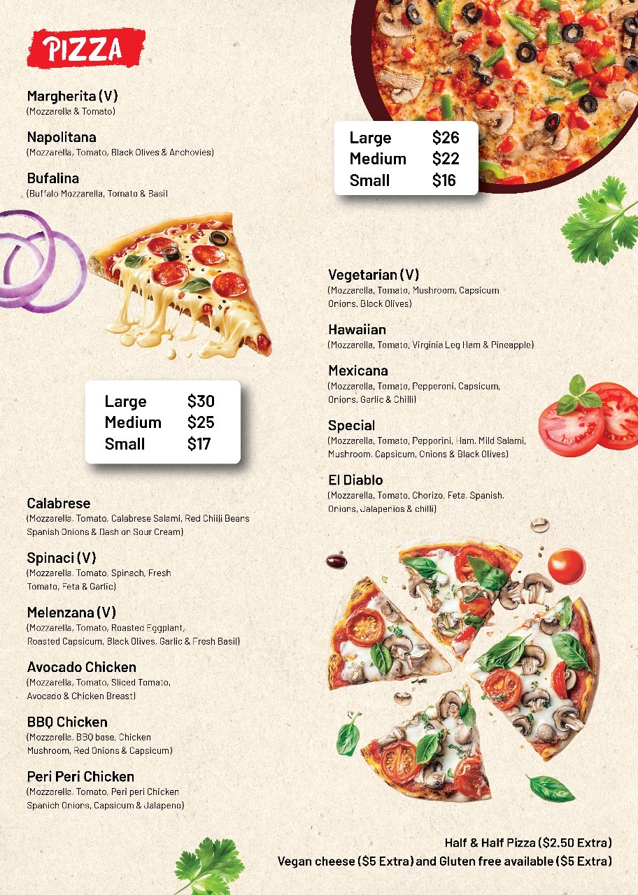 Mozzarella, Tomato, Roasted Eggplant, Roasted Capsicum, Black Olives, Garlic & Fresh Basil