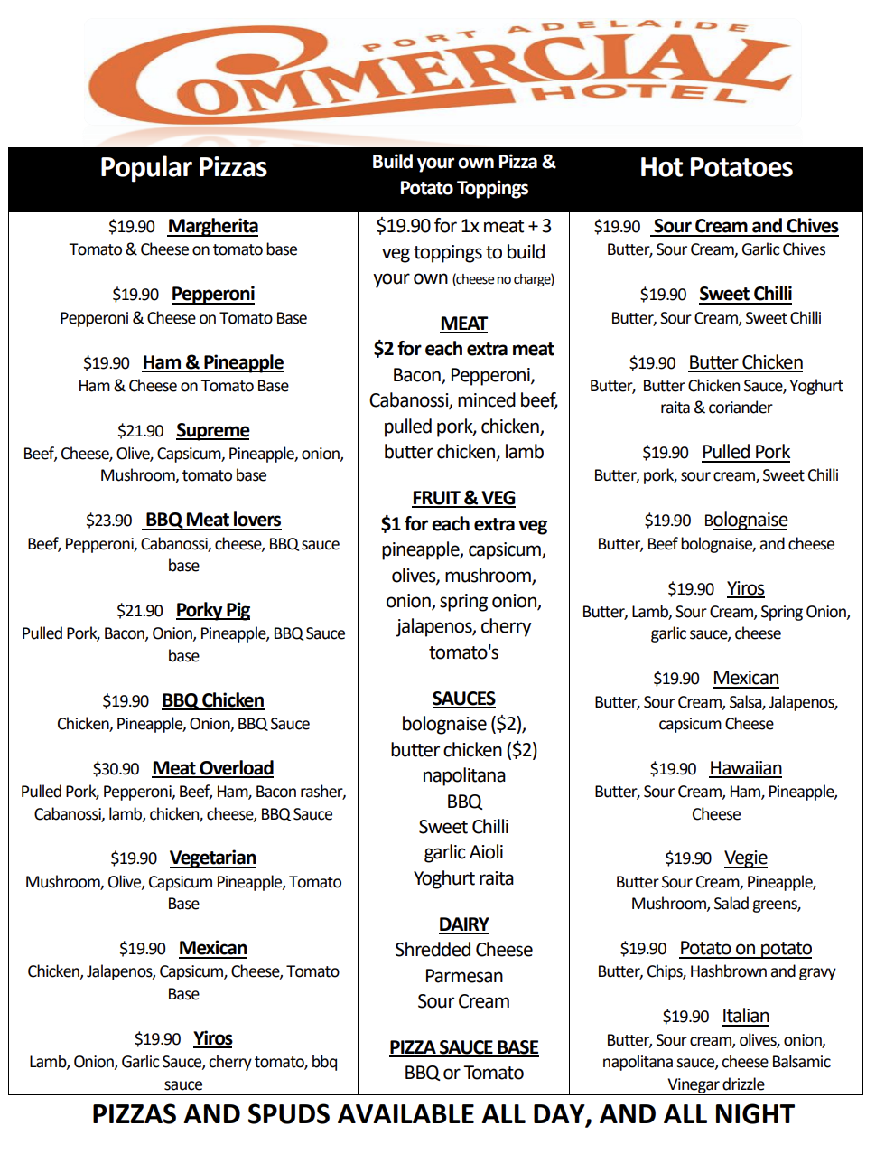Does Commercial Hotel Port Adelaide serve Australian food?