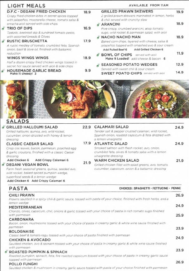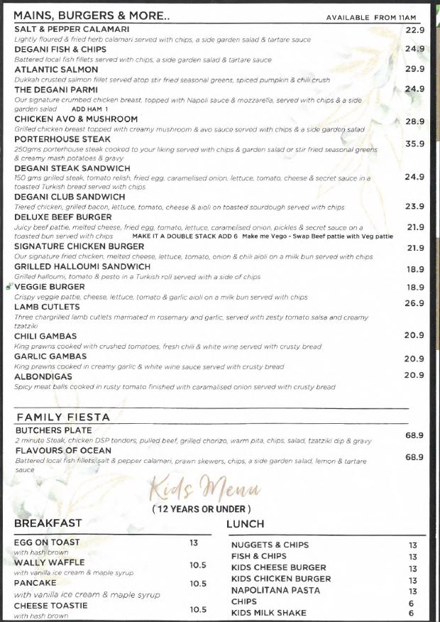 Menu from Degani Craigieburn Restaurant Woodoven Pizza