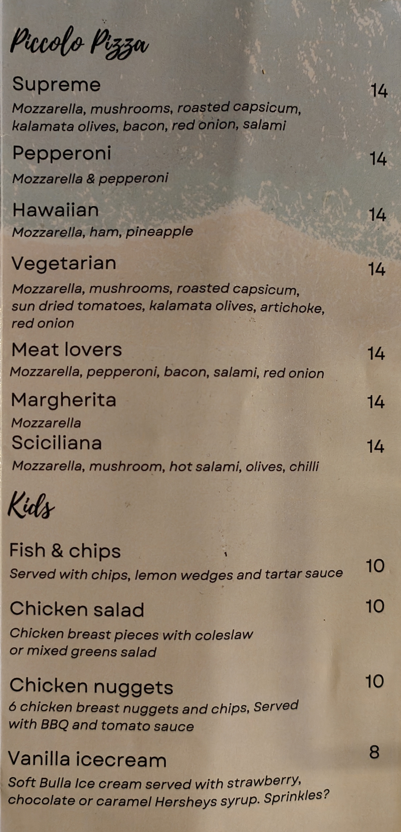 Mozzarella, mushrooms, roasted capsicum, kalamata olives, bacon, red onion & salami