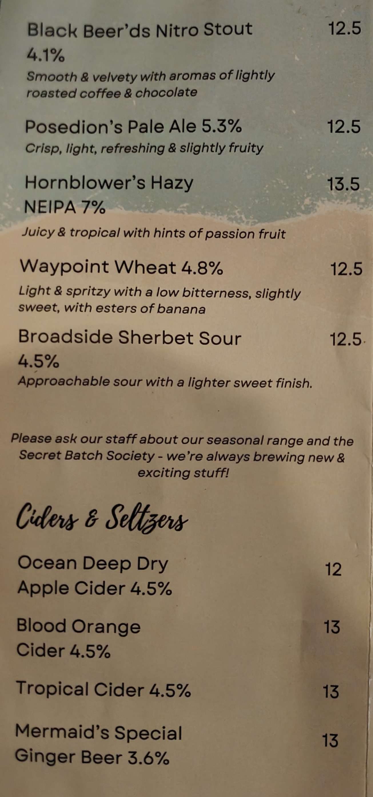 Menu from Limestone Coast Brewing