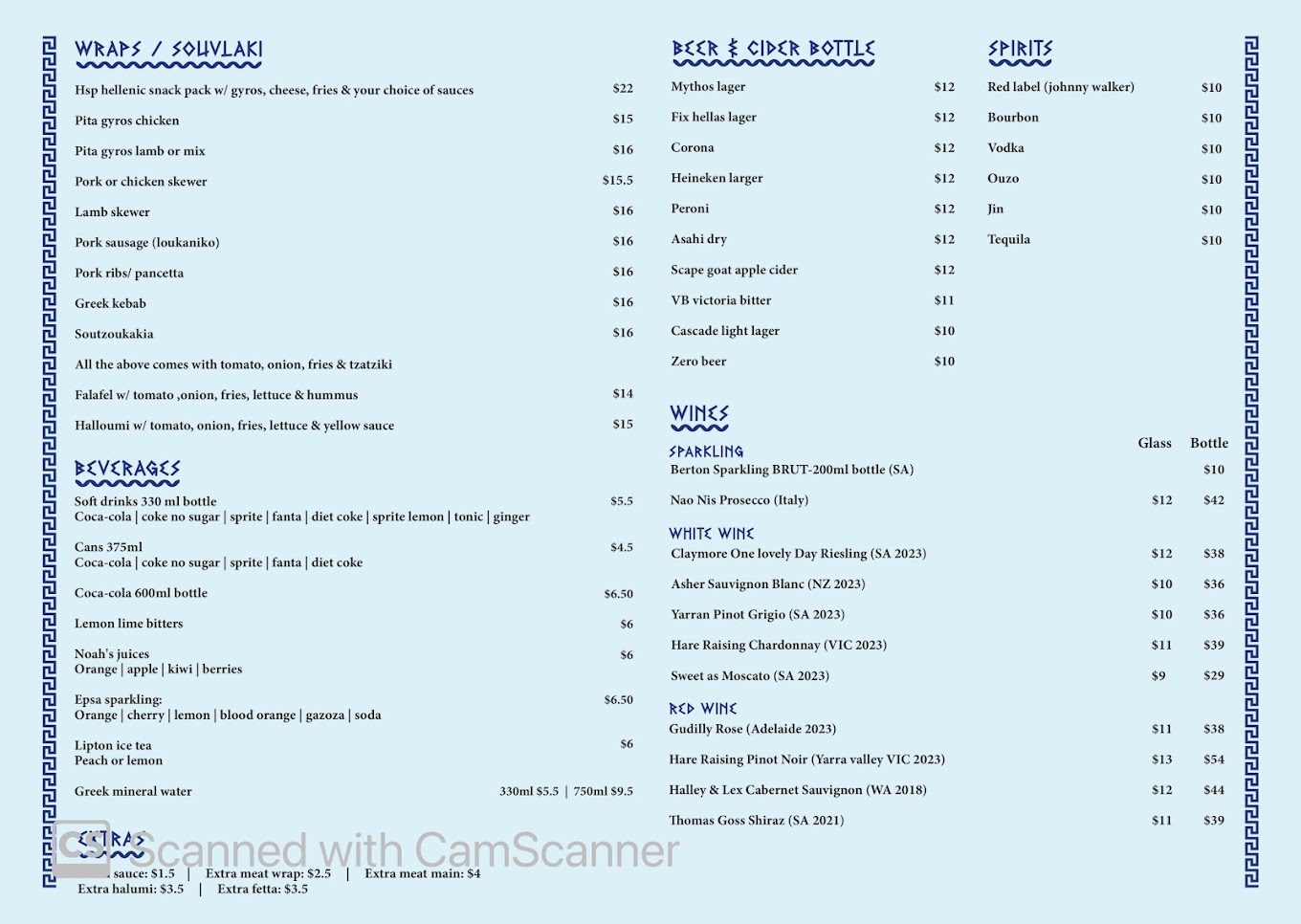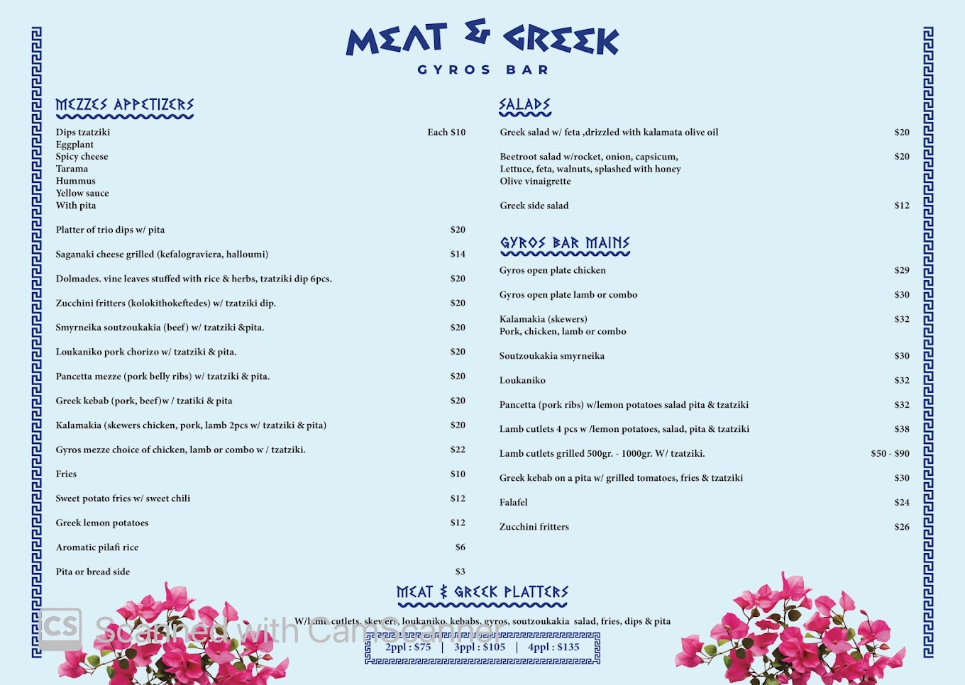 Menu from Meat And Greek