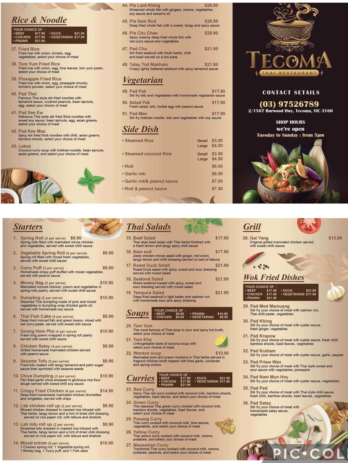Menu from Tecoma Thai Restaurant