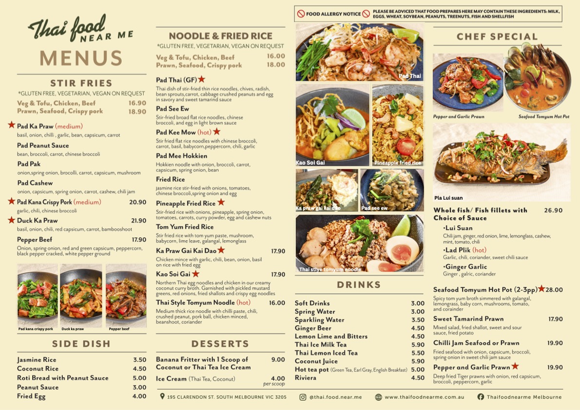 What's the restaurant buzz at Thai Food Near Me all about? Great Thai food and beverages keeps diners coming back for more at Thai Food Near Me. Located near South Melbourne in Melbourne, Thai Food Near Me features dishes like Asian, Southeast Asian. Check out what sets Thai Food Near Me apart from other restaurants in Melbourne and book a table today to enjoy your next meal out!