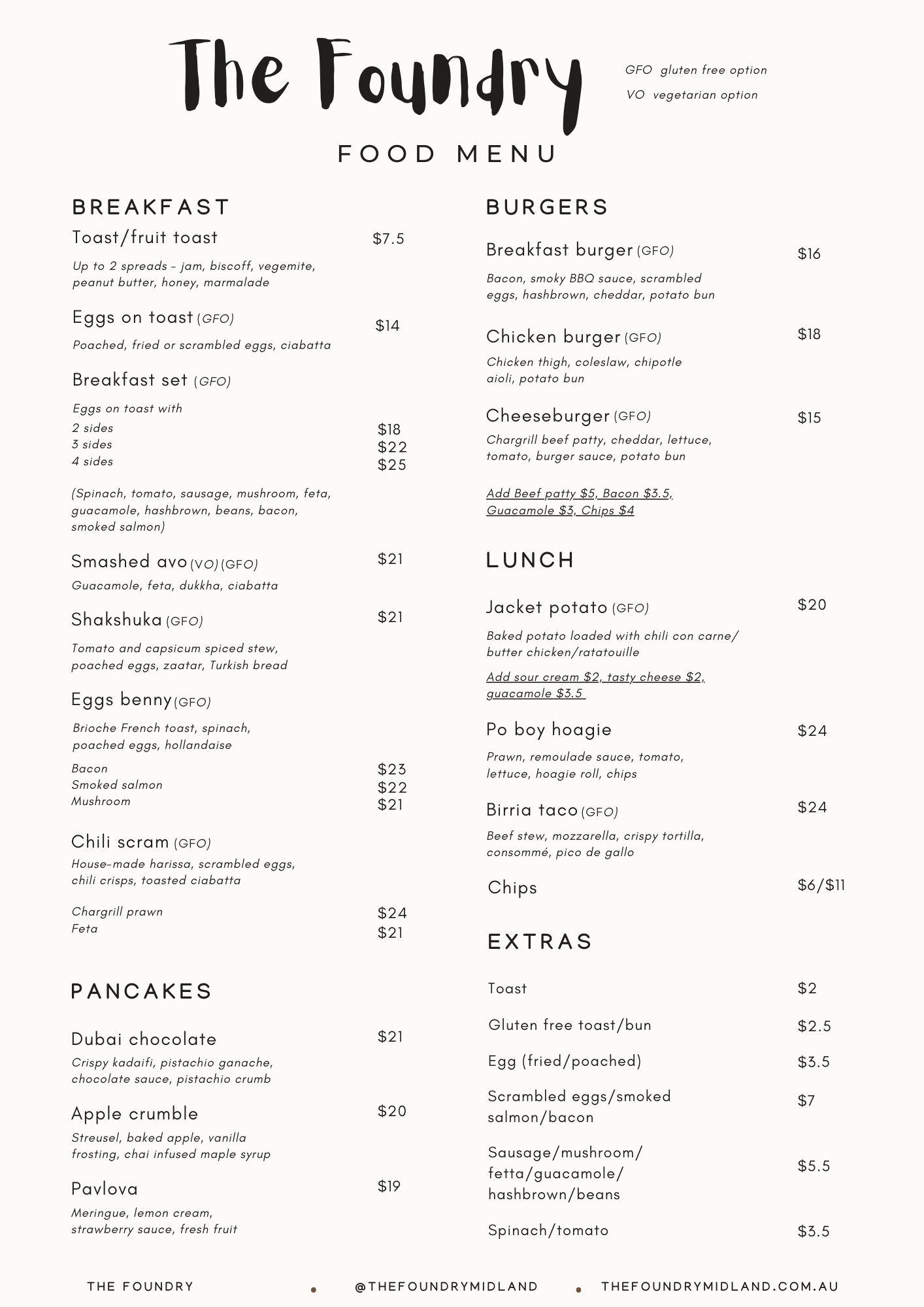 The Foundry is a Café located at 71/21 Foundry Road, Midland, Western Australia 6056. The Foundry is a popular spot in the Midland area. Whether you're looking for a light bite or the full foodie experience, explore the dishes at The Foundry and experience authentic Australian food in Perth.