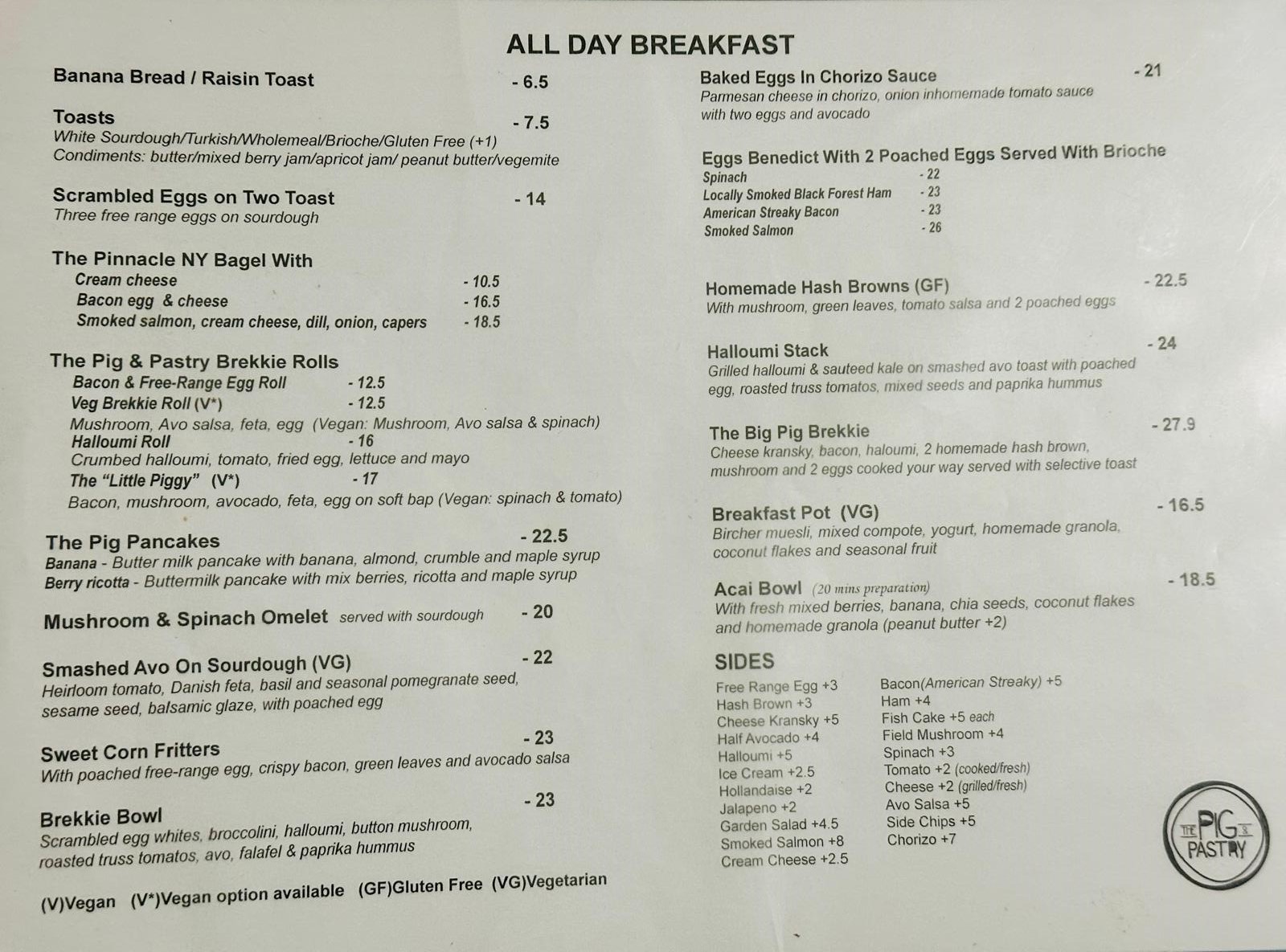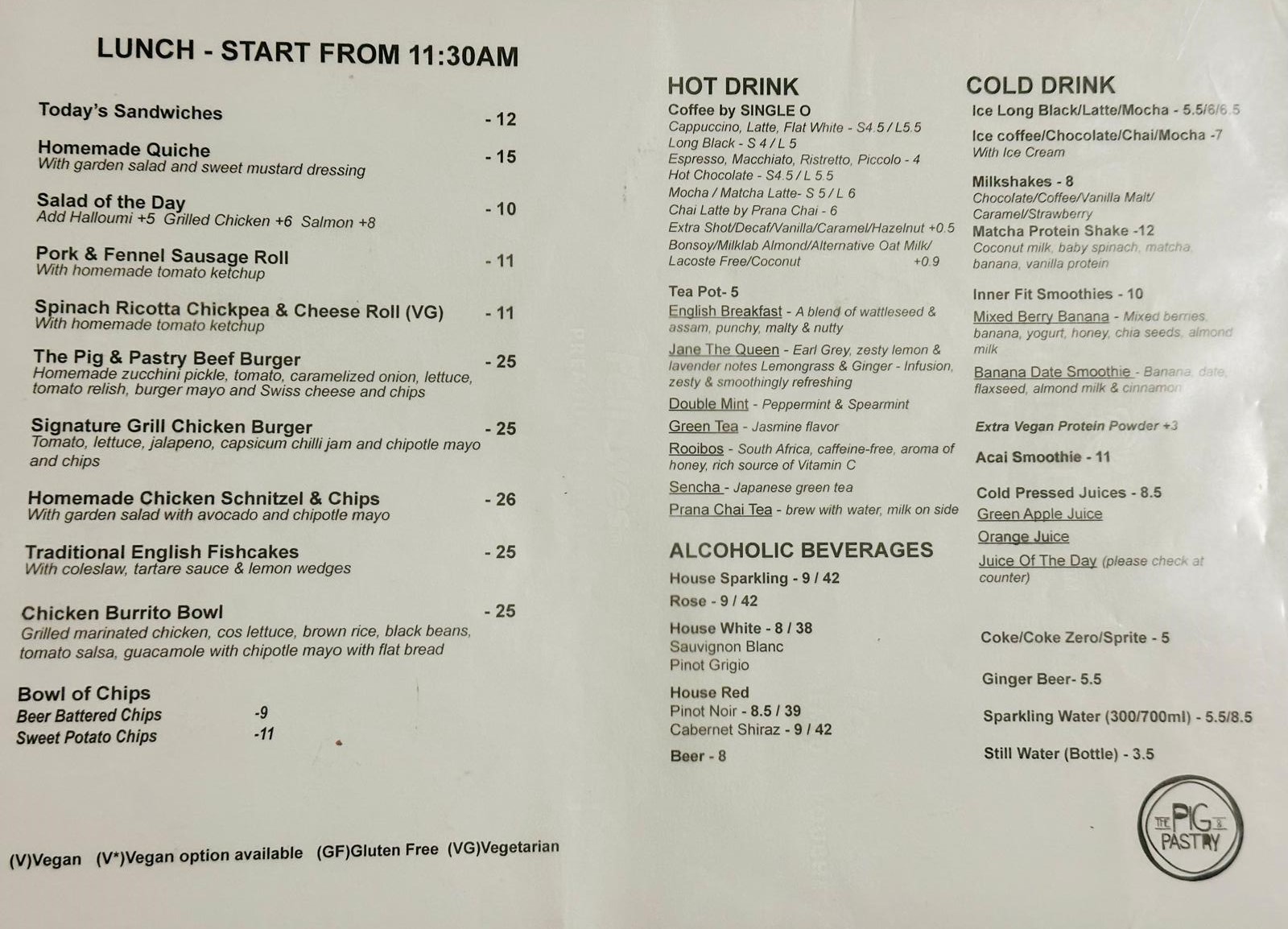 Menu from The Pig & Pastry
