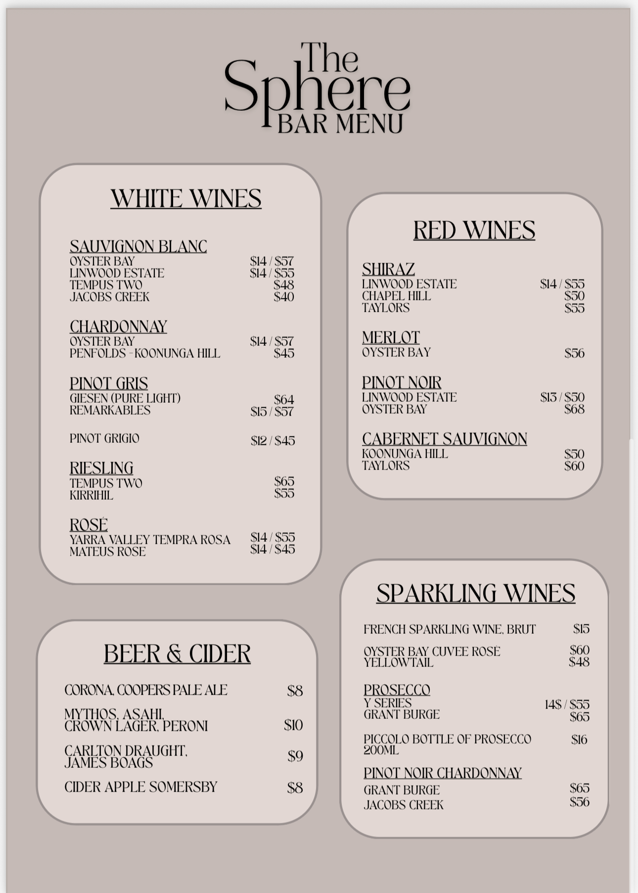 Menu from The Sphere